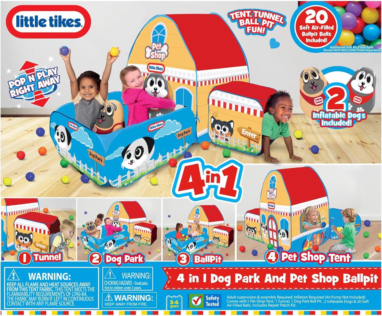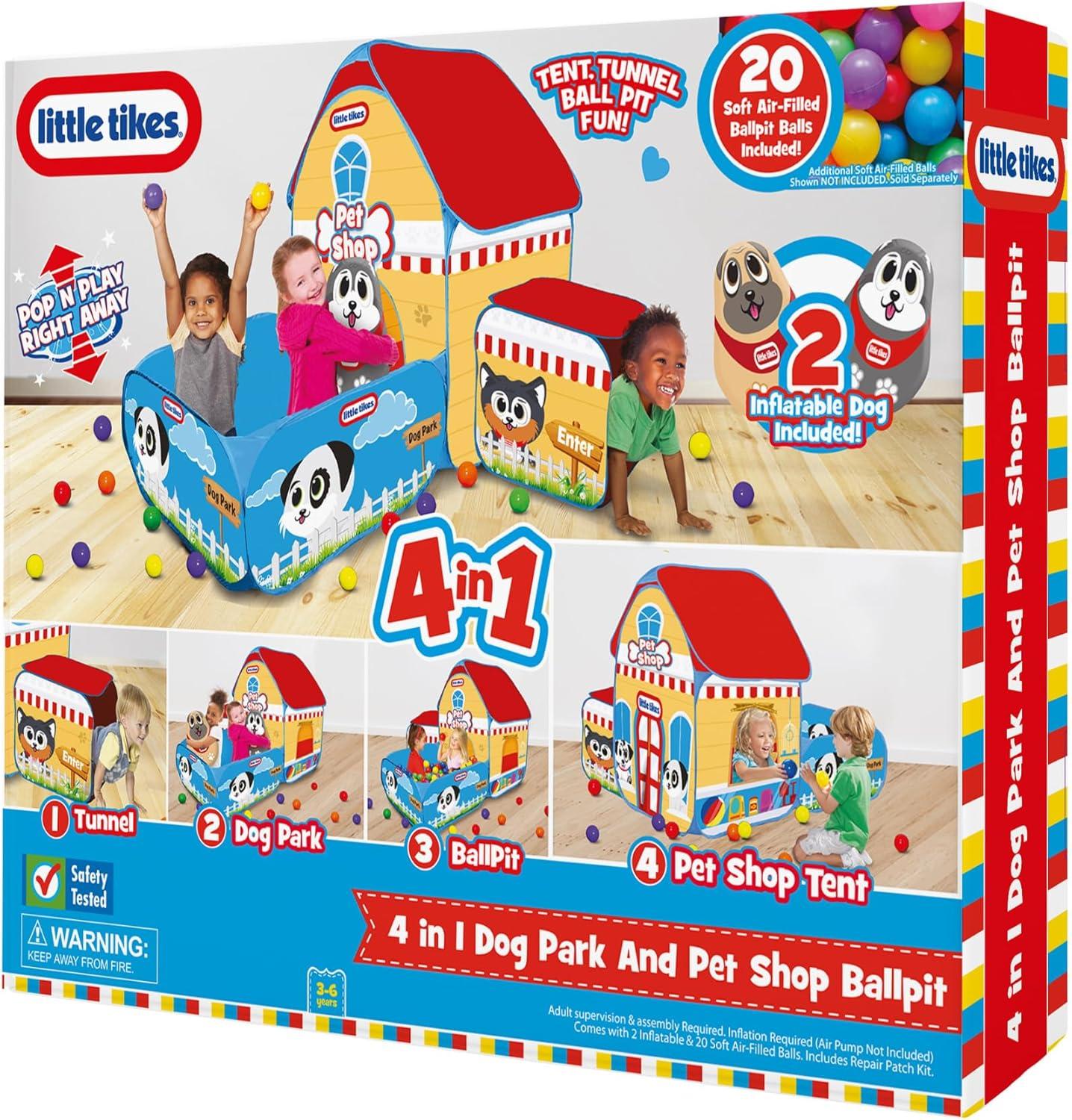 4-IN-1 DESIGN: Tent, tunnel ball pit fun! Versatile 4-in-1 playset for children aged 3-6; features a tunnel, pretend dog park, ball pit and pet shop tent in one! Perfect for imaginative play, sensory fun and roleplaying.