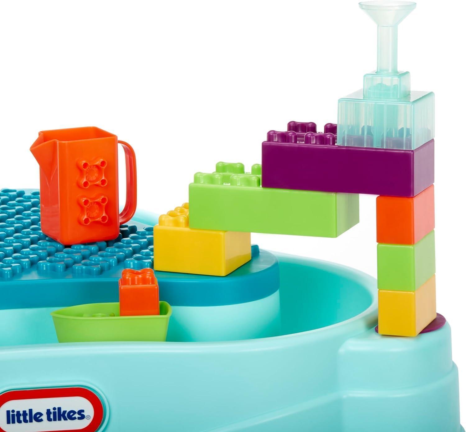 Little builders can play year-round with the Little Tikes® Build & Splash Water Table, a construction play table and water table, all-in-one! With over 25 pieces and room for all to play, toddlers and kids can enjoy colorful blocks, funnels, pipes, elbow pipes, boats and a pitcher. This wet/dry play set is perfect for both indoor and outdoor excitement, all year long. This dynamic playset includes removable legs for optional fun on the floor, a must-have set for grow-with-me-play. Enjoy easy cleanup and storage with the removable center building surface and additional mesh storage bag. Encourage the development of motor skills while using imagination to build and play. Assembly required. Ages 1-6.