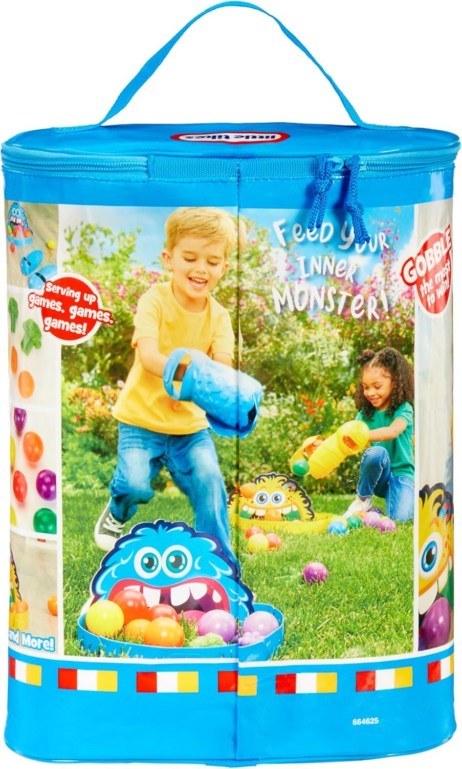 Kids and Families can enjoy a unique indoor and outdoor gaming experience full of silly movements and laughter. Two players go head-to-head in this active larger-than-life fun game. With easy set up and easy clean up, this set includes 16 balls, 10 food pieces, 4 oversized hands, and two big-mouth goals that all fit into a zipped storage bag. This fast paced, interactive, and action-packed game has 6 easy-to-learn ways to play including teaching kids about shapes, color recognition, and more. For ages 3+.