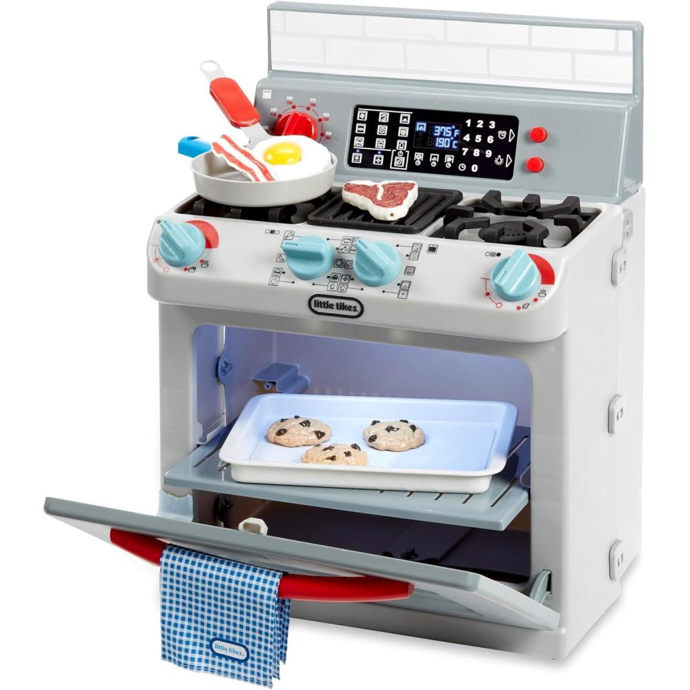 The First Fridge is easy to set up to its full size, and fits all 11 included accessories for easy cleanup too. Kids can even customize it by displaying their grocery lists or artwork on the door. Encourage kids to engage in imaginative pretend play with the First Fridge by Little Tikes!