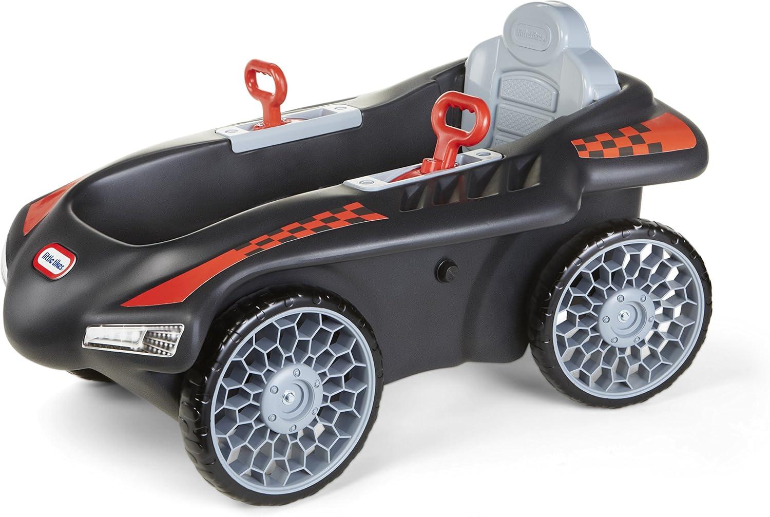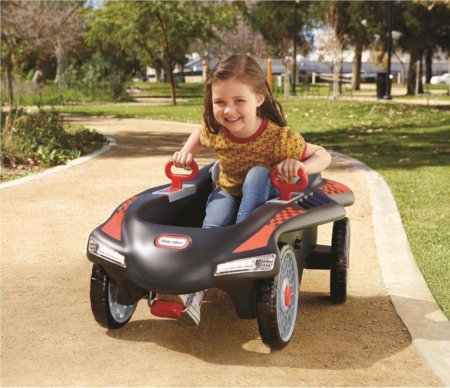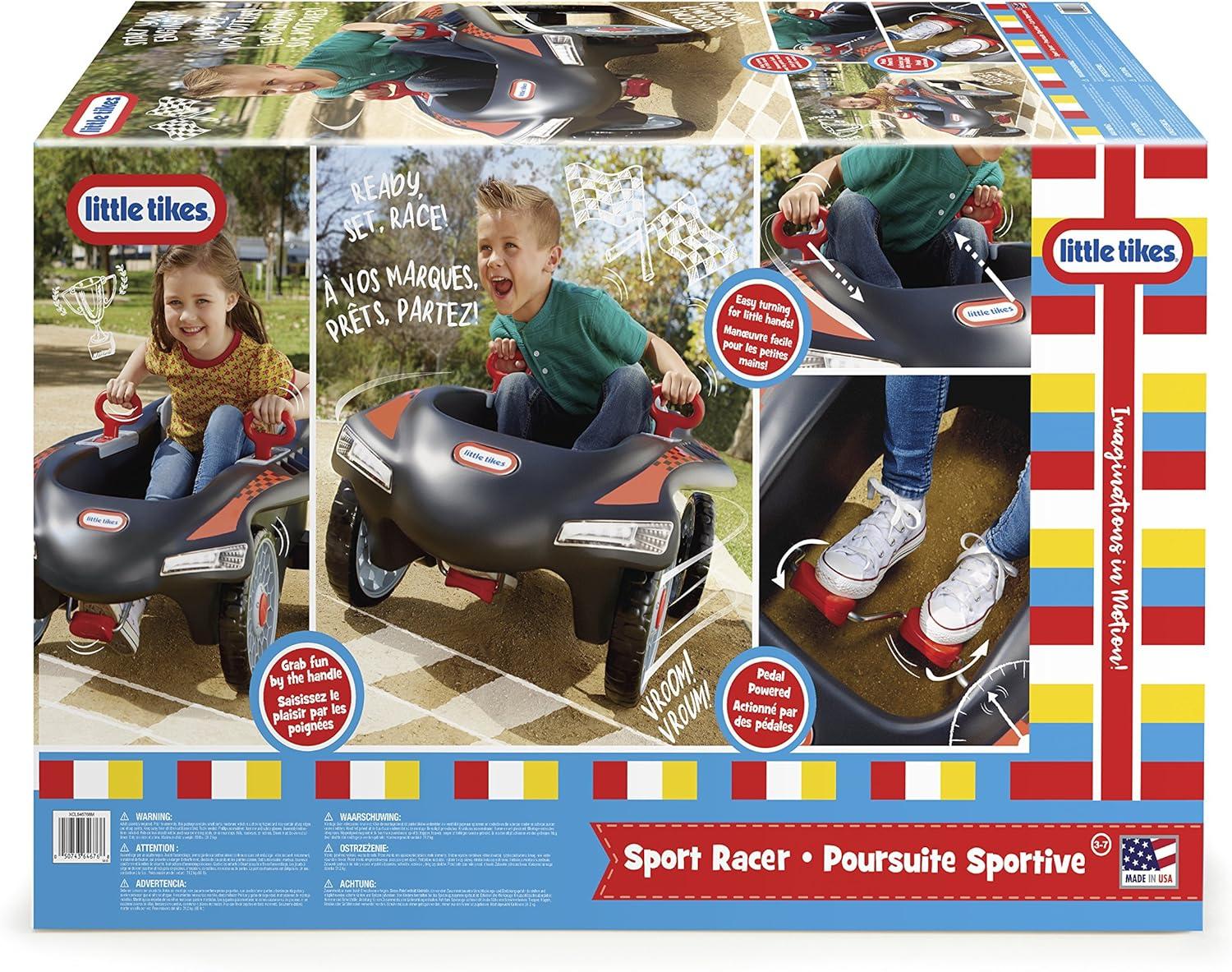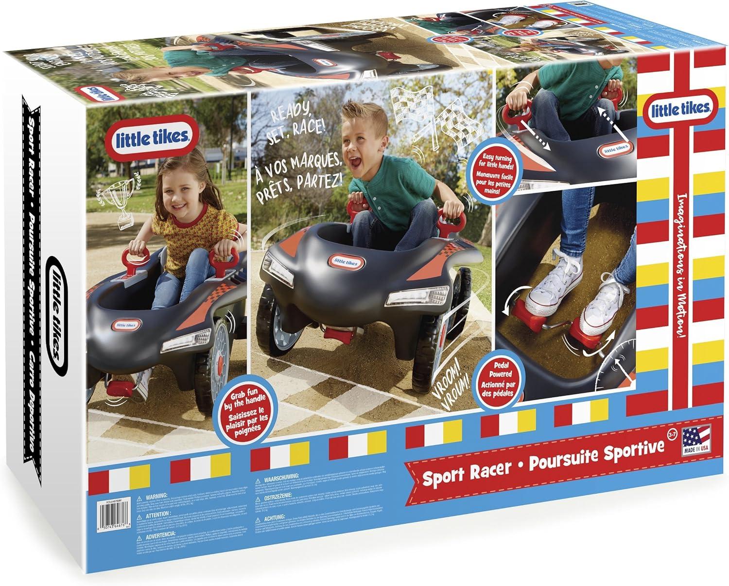 The Little Tikes Jett Car Racer, is built for thrilling, kid powered fun. They control the speed with the pedals they power, which means this is both fun and exercise in one. Easy turning handles let little hands make tight turns and the rear wheel steering provides unique maneuverability. Plus, the off-road style tires mean you can ride almost anywhere. And the adjustable seat back lets this cool sport racer grow with your Tikes. Ready, Set, Race!