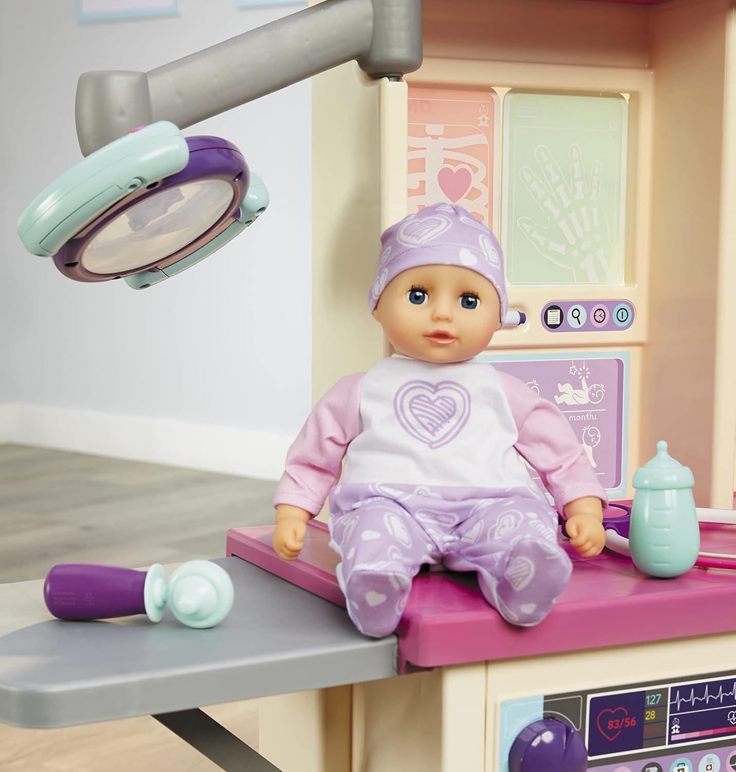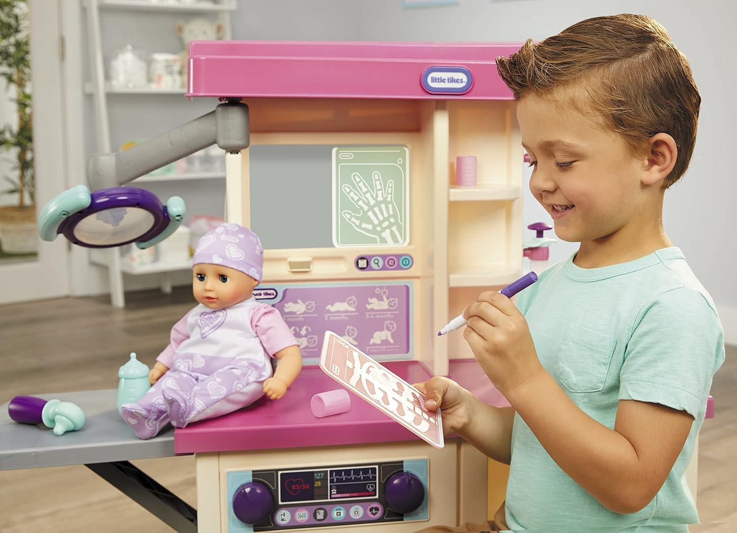 The Little Tikes® My First Baby Care Center™ allows kids to pretend they’re a doctor, nurse or new parent. Interactive features like an adjustable overhead exam light, folding exam table, X-ray station and more add to exciting role play. The unique Baby Born® doll comes with an outfit, diaper, hat, and swaddle blanket to cuddle your baby. The built-in X-ray station includes 2 ‘X-ray’ slides that can be drawn on (marker included) and the exam light really works. This playset is fun and educational and helps develop problem solving skills and promotes empathy through imaginative, doctor, nurse and parental role play. A bin, shelves and two snap-in holders are perfect for storing the Baby Born® doll and 15 accessories. Assembly required. Includes List: Baby Born® Doll, Baby Outfit, Hat, Diaper, Swaddle Blanket, 2 X-rays, 2 Bandages, Ear Scope, Stethoscope, Syringe, Bottle, Dry Erase Marker & Storage Bin. For ages 3+.