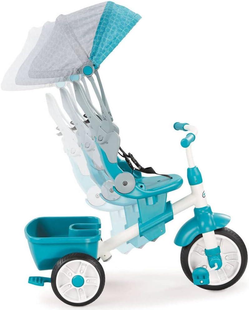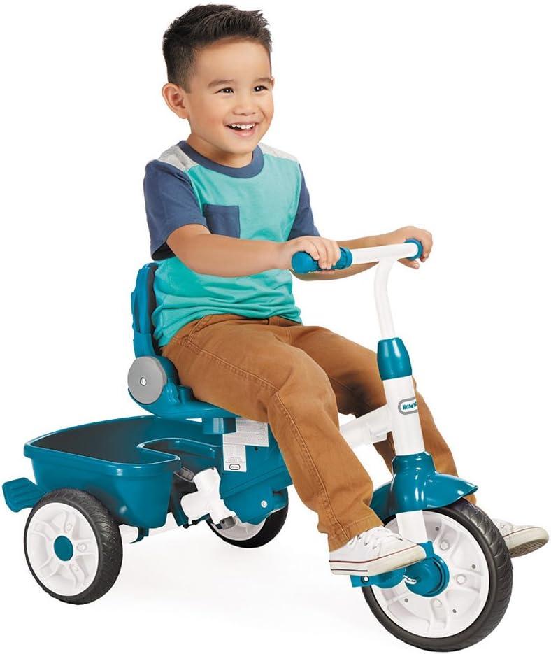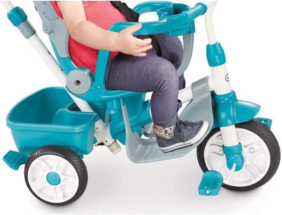 The Perfect Fit 4-in-1 Trike is ready to grow with your child! With all of the features of your favorite stroller, this trike is not only a perfect fit for your child – it's a “perfect fit” for parents too! This advanced trike makes on-the-go travel easy with multiple storage spots! From parents pushing, to toddlers learning to pedal, to them starting to steer, and then going on their own, this trike keeps pace with your active, growing child. Stage 1-Stroll (9+ months) Parents to push and control-When the foot platform is installed, the child will be unable to reach the pedals Stage 2-Pedal (18+ months) Toddlers can learn how to pedal, child is unable to turn the wheel Stage 3-Learn (24+ months) Remove the waist bar, child can steer while parent still has control with the push bar Stage 4-Trike (30+ months) Remove the push bar to let kids go on their own with parent supervision Product Features: • Blue 4-in-1 trike to grow with your child from stroller to trike • Full shade canopy to protect child from all angles • High-back seat for comfort and safety • Adjustable seat with the flip of a switch • Full foot platform fully protects little feet • Large parent storage bucket and bottle holder • Safety-bar with cup/snack holder • Ages: 9+ months.