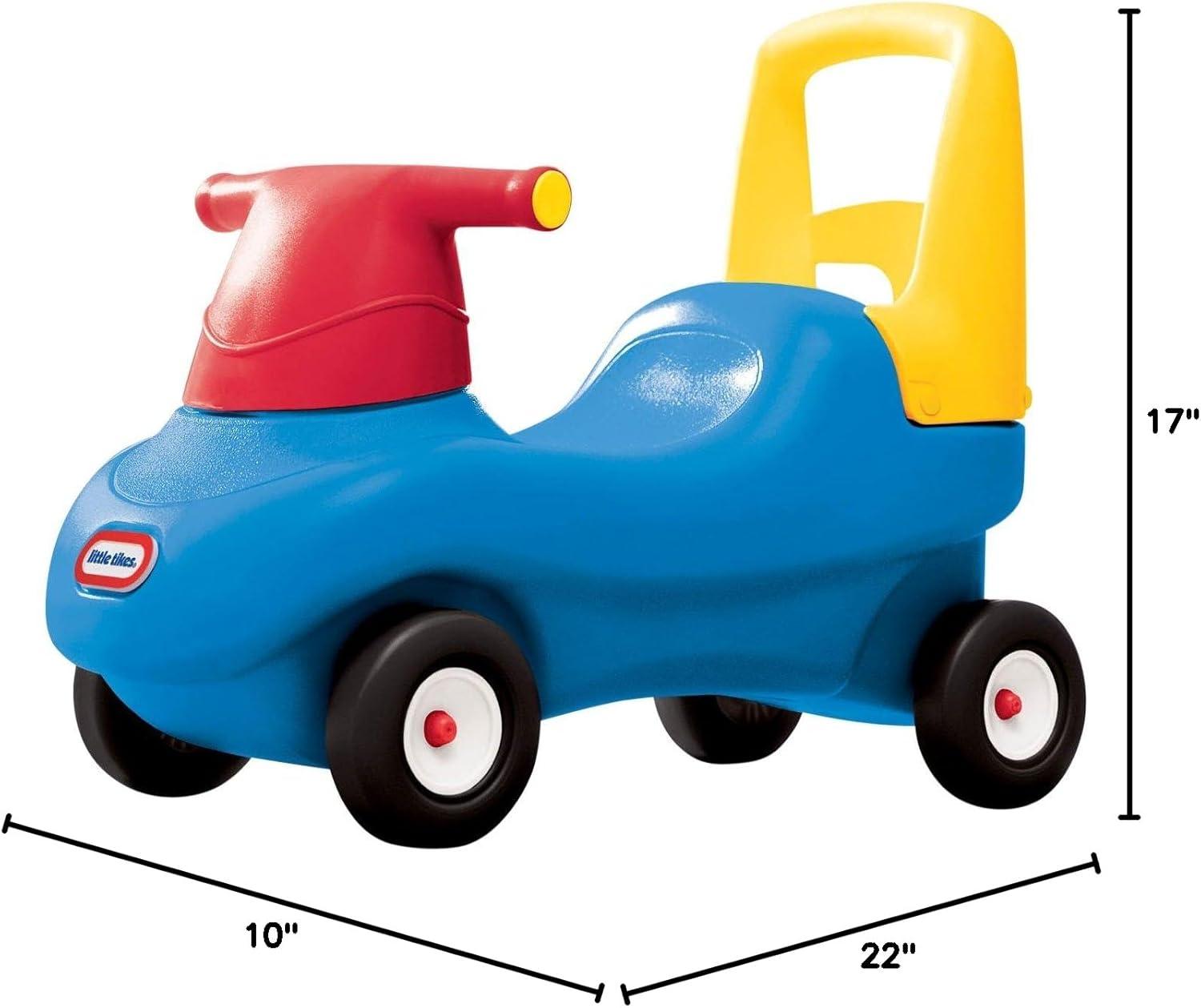 A riding toy and walker in one! This foot to floor ride on toy includes a kid-sized push bar. Little ones can ride themselves or use as a push toy. This push ride on toy car is ideal for use indoors or outdoors. The seat on the back is the perfect place for bringing along a favorite toy or pal (stuffed toy not included)