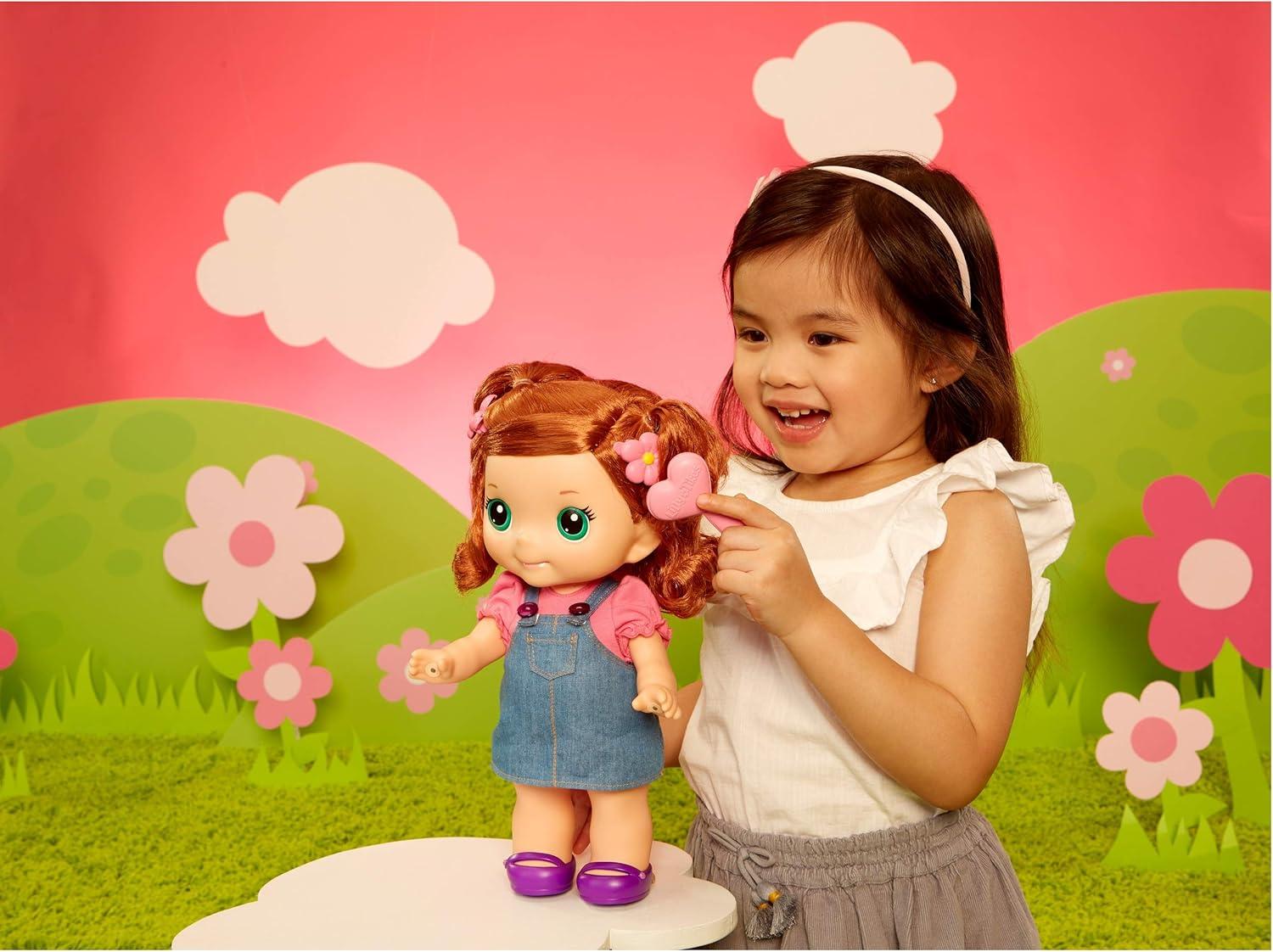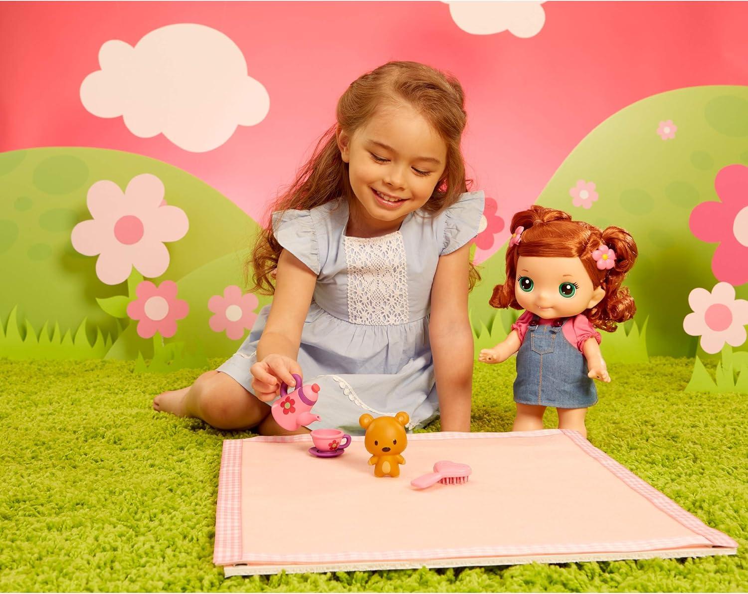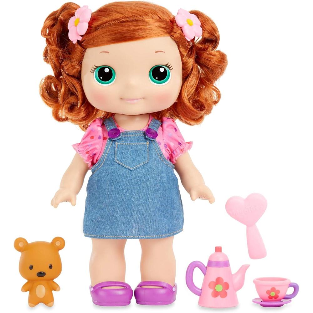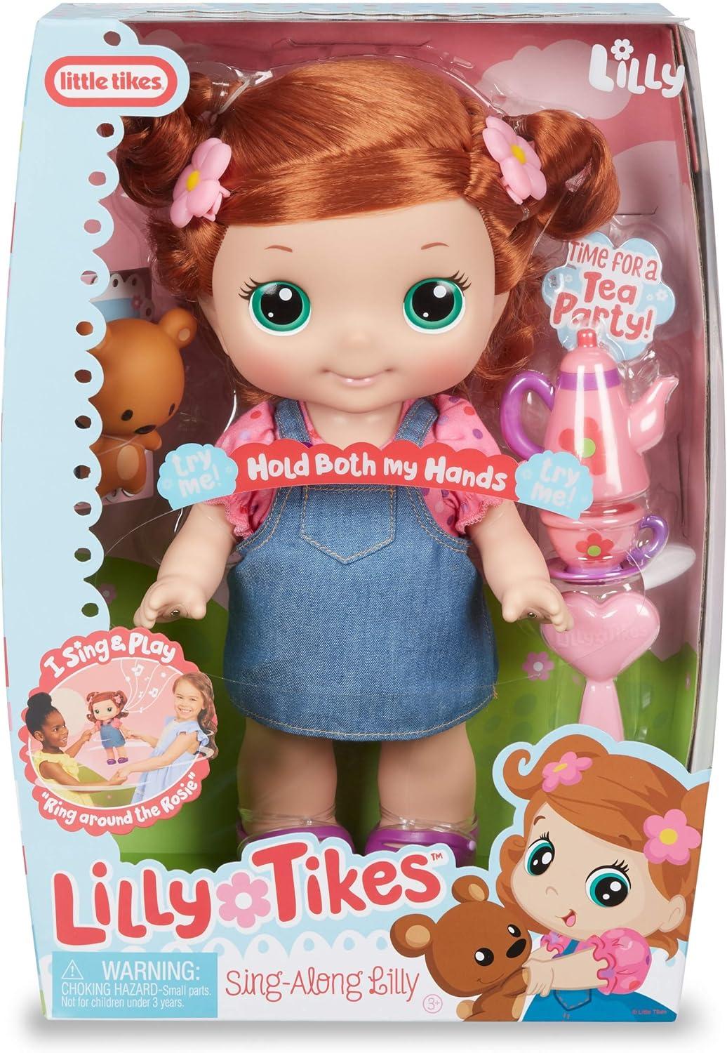 The new Sing-Along Lilly doll brings kids' vibrant imaginations to life as they play all day. Holding both the Sing-Along Lilly doll's hands makes her sing her own version of “Ring Around the Rosie” and speak 10 unique phrases for tons of interactive play. When they're done playing and singing, kids can enjoy teatime with Lilly using the included, doll-size teapot, teacup, saucer, and teddy bear. Lilly stands 12 inches tall, has fully articulated arms and legs, a turning head, and changeable clothes so kids can have her sit, pose, or do just about anything they can imagine. Best of all, Lilly's soft hair is brushable and kids can style it with the included brush and two hair clips. Join the fun with Lilly, Ami, and Mitts!