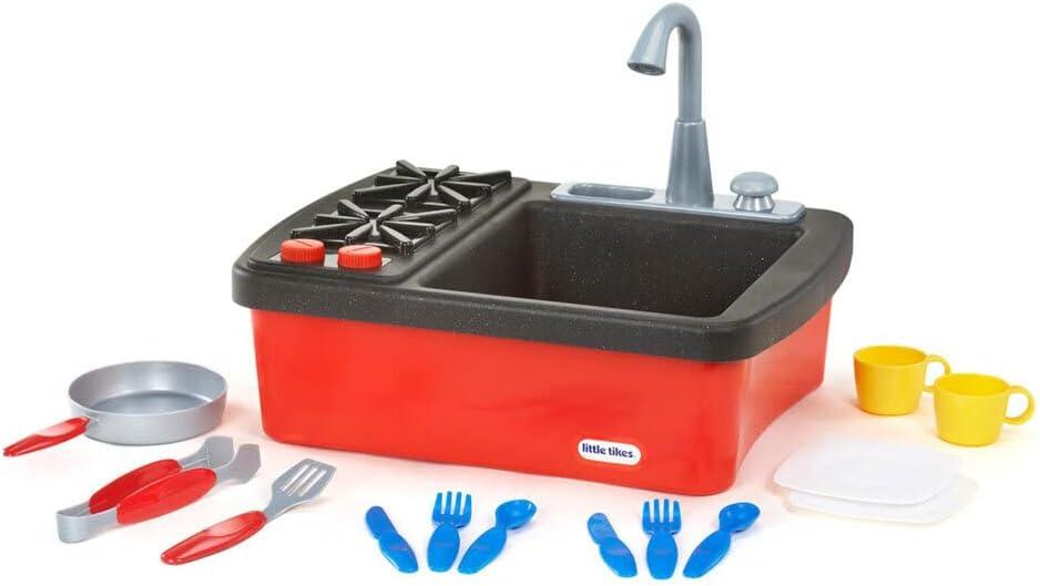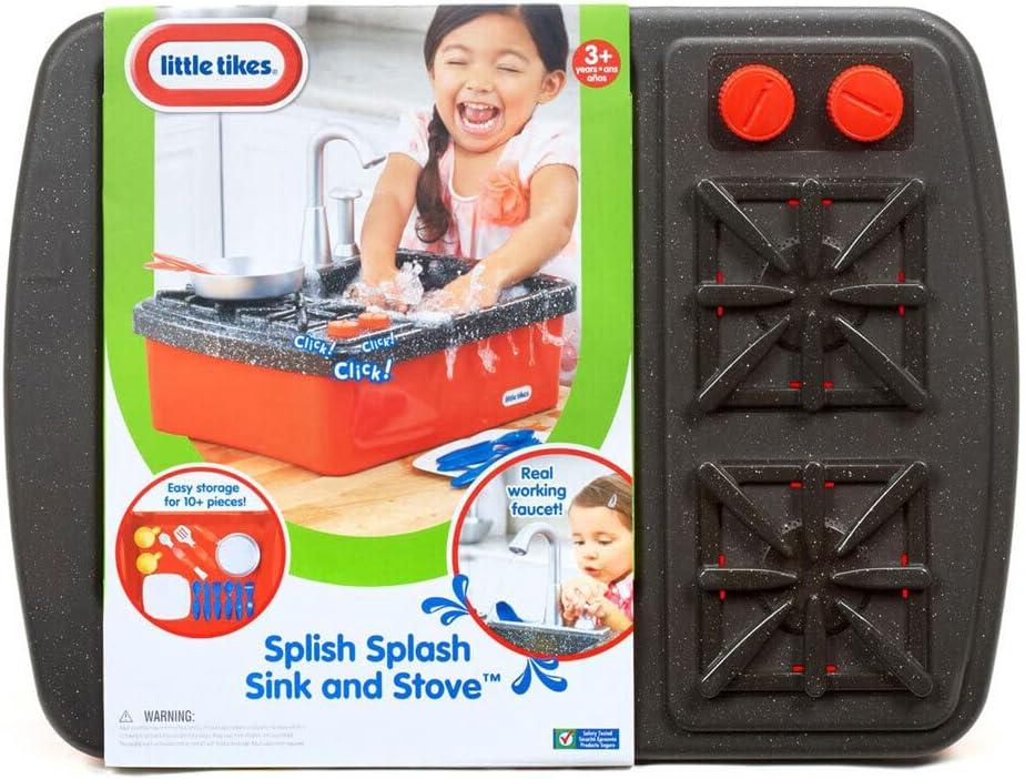 Playing in the sink has never been more fun! The Splish Splash Sink & Stove™ is an affordable, portable and easy to clean product that will spark your little one’s imagination to play in the kitchen just like mom and dad. Kids will love the real working faucet that really pumps water! With 13 accessories, kids will have fun learning the basic functions of a kitchen. The possibilities are endless with the Splish Splash Sink & Stove™.