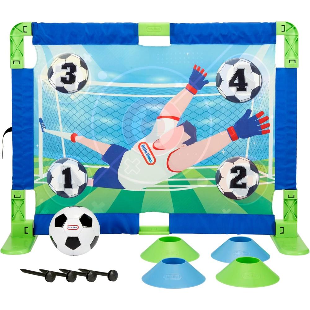 SOCCER STAR – Your child can train like the pros with this double-sided soccer training goal. With its bounceback net and included training cones, this soccer trainer helps kids practice dribbling and scoring goals during fun outdoor playtime.
