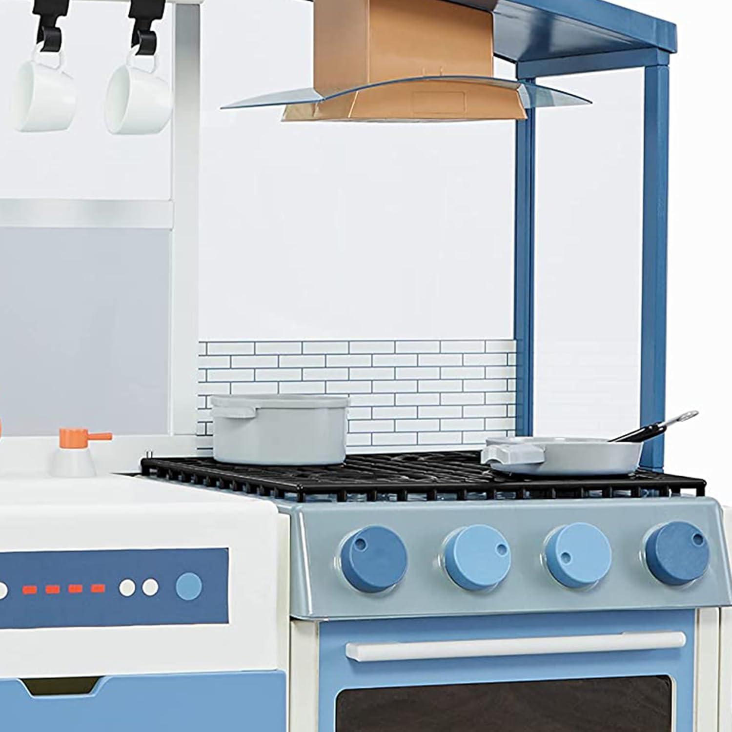 Little Tikes Wood Chef’s Play Kitchen with Realistic Lights Sounds, 20+ Interactive Accessories Set, Dual-Sided White & Blue Wooden Play Kitchen- Gift for Kids Girls Boys, Pretend Toy for Ages 3 4 5+