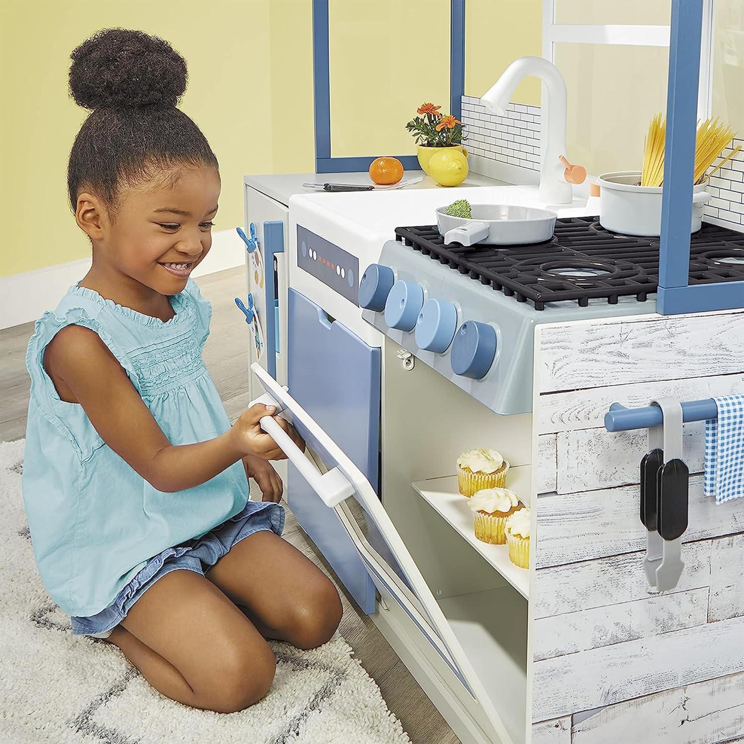 ENCOURAGES IMAGINATION: With over 20 included and interactive accessories kids can imagine, create and practice making their favorite recipes, and explore the responsibilities of safely cooking in a kitchen and cleaning up after themselves.